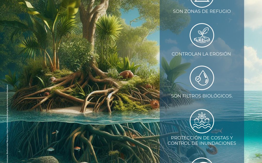 A continuación te mostramos una infografía realizada en La Paz Partners Conservancy donde explicamos qué es un ecosistema de manglar y los beneficios que brinda a la sociedad.